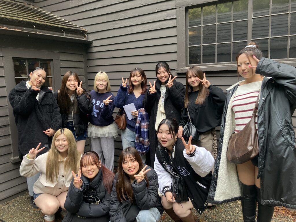 あいにくの雨模様でしたが、ギフトショップ前で記念撮影しました。
